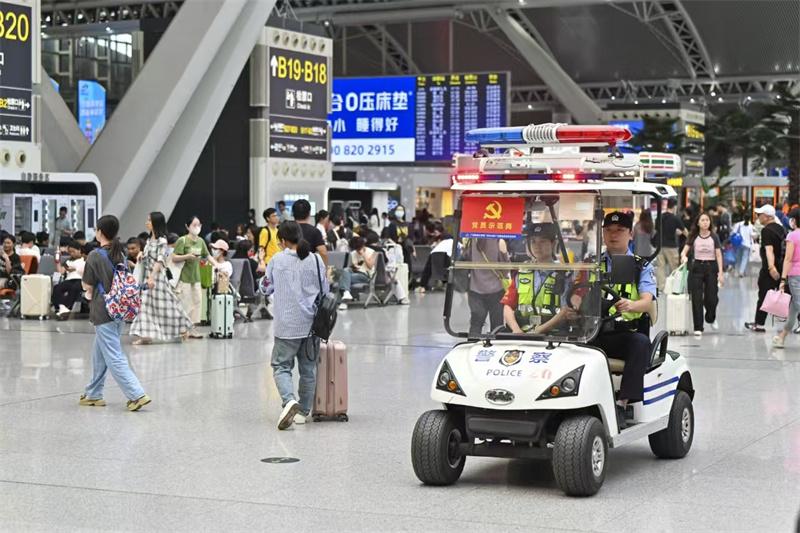 今年端午,“2小時(shí)高鐵圈”成為旅客出游主要范圍,粵港澳大灣區(qū)、粵湘兩地、兩廣區(qū)域的中短途線路備受青睞。為凈化出行環(huán)境,廣州鐵路公安處從機(jī)關(guān)及所隊(duì)調(diào)配近百名警力,部署至廣州南站等客流重點(diǎn)樞紐及重點(diǎn)列車(chē),提升見(jiàn)警率與管事率,嚴(yán)厲打擊霸座、猥褻、醉酒滋事,以及盜竊、詐騙等侵害旅客權(quán)益的違法犯罪行為,切實(shí)增強(qiáng)旅客出行安全感。