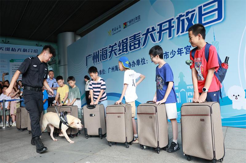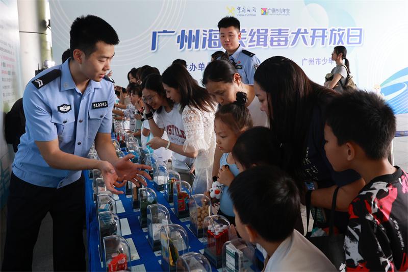 6月22日,廣州海關(guān)聯(lián)合廣州市少年宮舉辦“緝毒犬開放日”活動(dòng),通過寓教于樂的禁毒宣傳活動(dòng),讓廣大市民朋友在趣味游戲中了解海關(guān)打擊毒品走私工作成效、禁毒常識,并與海關(guān)緝毒犬進(jìn)行現(xiàn)場親密互動(dòng),活動(dòng)吸引了400余名市民參加。