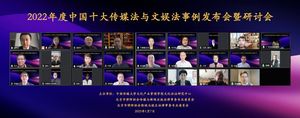 2023年1月7日,“2022年度中國十大傳媒法與文娛法事例發(fā)布會暨研討會”在北京以線上方式舉辦。
