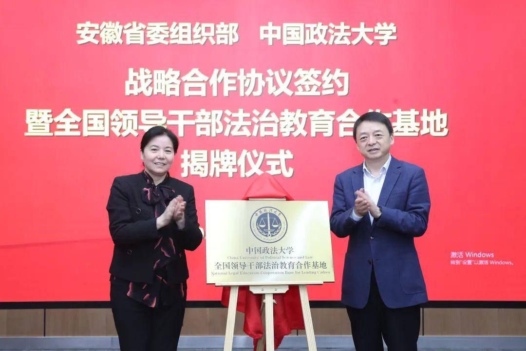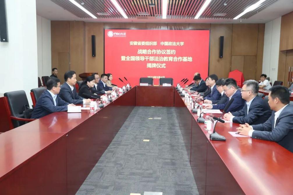 5月4日下午,安徽省委組織部與中國(guó)政法大學(xué)戰(zhàn)略合作協(xié)議簽約暨全國(guó)領(lǐng)導(dǎo)干部法治教育合作基地揭牌儀式在京舉行。安徽省委常委、組織部部長(zhǎng)丁向群,安徽省委組織部副部長(zhǎng)蔣曦,中國(guó)政法大學(xué)校長(zhǎng)馬懷德出席儀式。儀式由中國(guó)政法大學(xué)副校長(zhǎng)常保國(guó)主持。