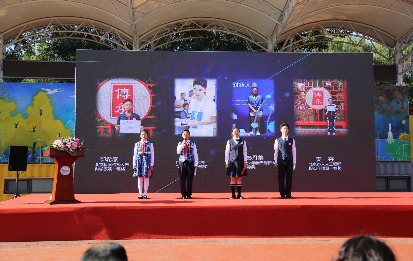 活動(dòng)現(xiàn)場(chǎng),分別獲得2021年第三屆北京科學(xué)傳播大賽中榮獲科學(xué)表演團(tuán)體一等獎(jiǎng)、2023年北京市未來工程師競(jìng)賽小學(xué)組一等獎(jiǎng)、2022年世界機(jī)器人大賽總決賽挑戰(zhàn)賽一等獎(jiǎng)、2023全國(guó)青少年航天創(chuàng)新大賽二等獎(jiǎng)的四名學(xué)生代表郭希泰、劉嘉樂、秦丹蕾、姜萊,分享了參加科技活動(dòng)的經(jīng)歷與心得體會(huì)。“每周兩節(jié)的科學(xué)課點(diǎn)燃了我們的太空夢(mèng)”“在一次次賽前集訓(xùn)中,通過老師帶領(lǐng)我們查找資料、研究原理、設(shè)計(jì)作品等動(dòng)手實(shí)踐活動(dòng),我提高了綜合運(yùn)用知識(shí)的能力和創(chuàng)造性解決問題的能力”“曾經(jīng)基礎(chǔ)科學(xué)知識(shí)薄弱的我,各種提問占用老師很多時(shí)間,老師卻總是表揚(yáng)我虛心求教的態(tài)度”“在討論比賽項(xiàng)目時(shí),我們?cè)谙嗷ヌ釂栔信鲎菜季S的火花,我學(xué)會(huì)了如何傾聽、如何溝通”……學(xué)生們認(rèn)為,他們科學(xué)興趣的激發(fā)、科學(xué)探究能力的提升、科技實(shí)踐能力的強(qiáng)化、科技探索之路的開啟,離不開學(xué)校豐富的科技教育課程、科技競(jìng)賽平臺(tái)的搭建、老師的悉心教導(dǎo)與鼓勵(lì)、小組的合作探究。