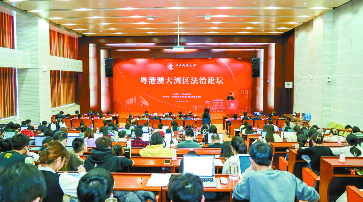 日前,由中央財經(jīng)大學(xué)主辦、中央財經(jīng)大學(xué)粵港澳大灣區(qū)(黃埔)研究院承辦的“粵港澳大灣區(qū)法治論壇”在中央財經(jīng)大學(xué)舉行。全國人大常委會委員、全國人大社會建設(shè)委員會副主任委員景漢朝,最高人民檢察院檢察委員會副部級專職委員、二級大檢察官苗生明,中國法學(xué)會副會長姜偉,中央政法委法治局局長周濤以及來自內(nèi)地與港澳地區(qū)高等院校、科研院所的數(shù)十余位專家學(xué)者共同與會。中央財經(jīng)大學(xué)黨委書記何秀超代表學(xué)校致辭,黨委常委、副校長李濤主持開幕式,副校長栗崢主持專家論壇。