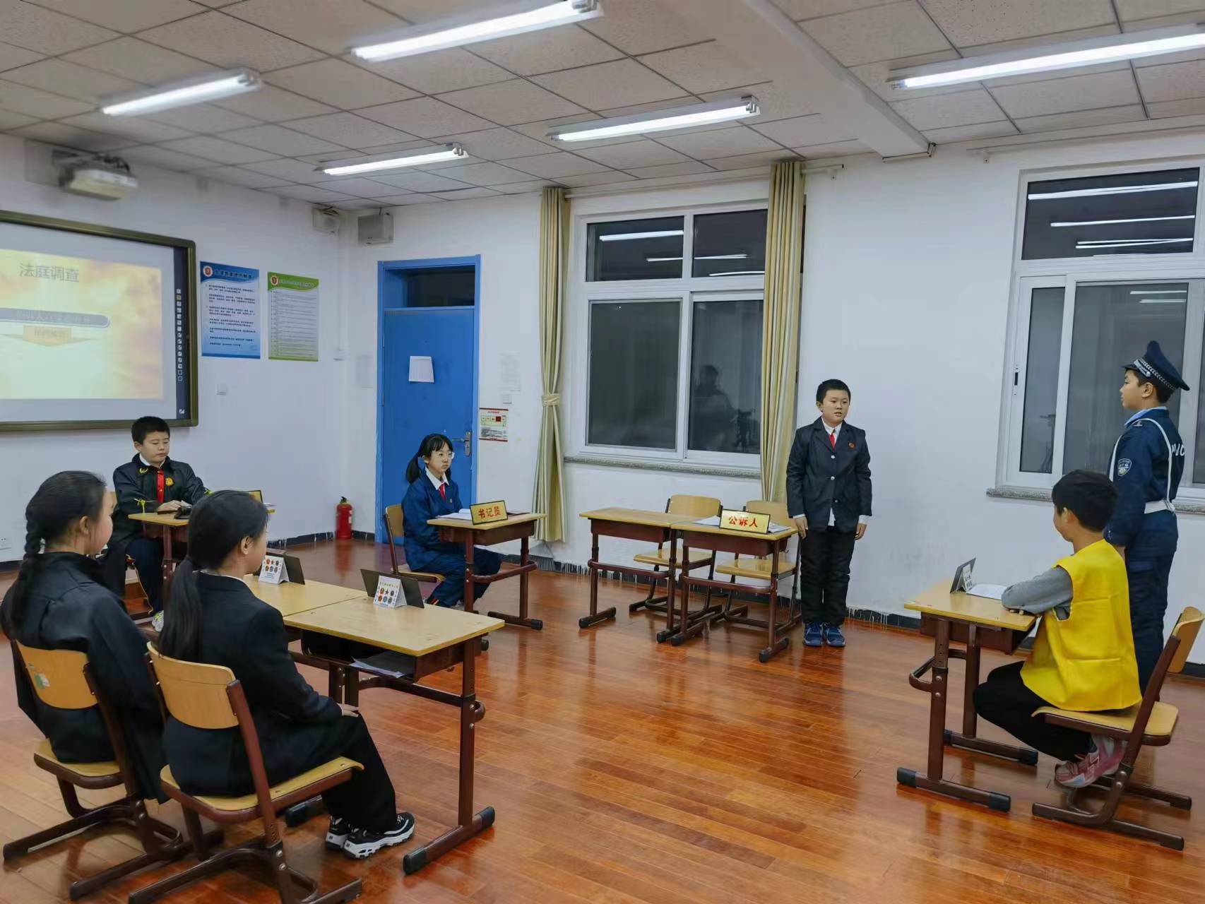 高家園小學學生以情景表演的形式對一起“網(wǎng)絡(luò)詐騙案”進行“審理”。