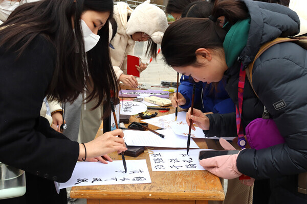 同一天,主題活動在清華大學(xué)學(xué)生服務(wù)中心前舉辦?;顒油ㄟ^限時背誦憲法名言、法律知識問答等游戲方式,向師生普及憲法,引導(dǎo)學(xué)習(xí)憲法?,F(xiàn)場設(shè)計了“想點大事”“三行情書”“與法同行”“現(xiàn)身‘書法’”等活動,鼓勵師生們以筆書寫憲法意,以心感悟憲法情?,F(xiàn)場還準(zhǔn)備了帶有宣傳法治內(nèi)容的小夜燈、筆記本、卡套、文件夾等文創(chuàng)獎品。