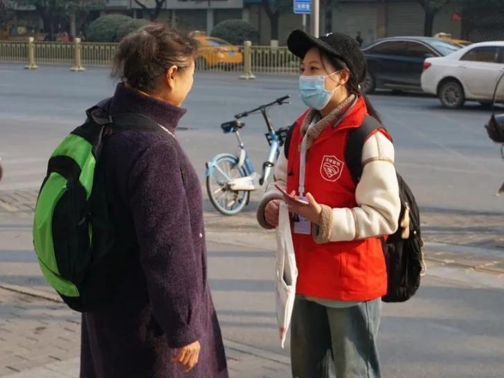 在西安市法律援助中心服務(wù)驛站,法律服務(wù)中心志愿者們幫助服務(wù)驛站向周邊群眾分發(fā)法律宣傳資料,普及驛站的服務(wù)地點和功能,同時耐心地講解法律知識。