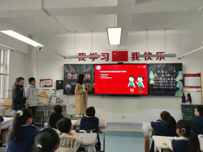 在西安市曲江第十四小學(xué),法律服務(wù)中心學(xué)生志愿者組成的11支普法小組為三、四、五年級的學(xué)生們進行了一場趣味“法律啟蒙”。面對充滿童趣的小學(xué)生,志愿者們通過講解PPT、組織學(xué)生觀看法治小視頻、設(shè)置互動問答的形式將復(fù)雜的法律知識簡單化,以趣味性的方式傳授給孩子們。學(xué)生們競相舉手,積極地回答問題,整個教室充滿了歡聲笑語。