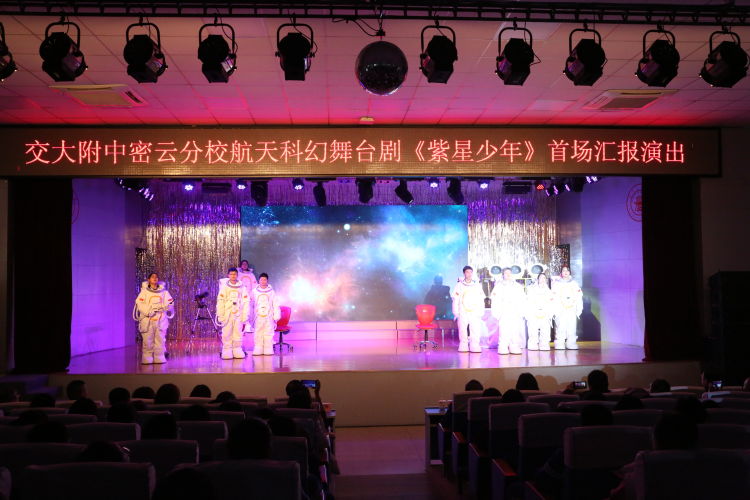 科技是興國之源,教育是立國之本。為進一步提高科學(xué)教育意識和學(xué)生科學(xué)素養(yǎng),交大附中密云分?;I備半年的“鑄飛天夢想 促幸福成長”航天科幻舞臺劇《紫星少年》在2024年1月18日首演。北京市密云區(qū)各級領(lǐng)導(dǎo)及各中學(xué)書記、校長參加了活動。