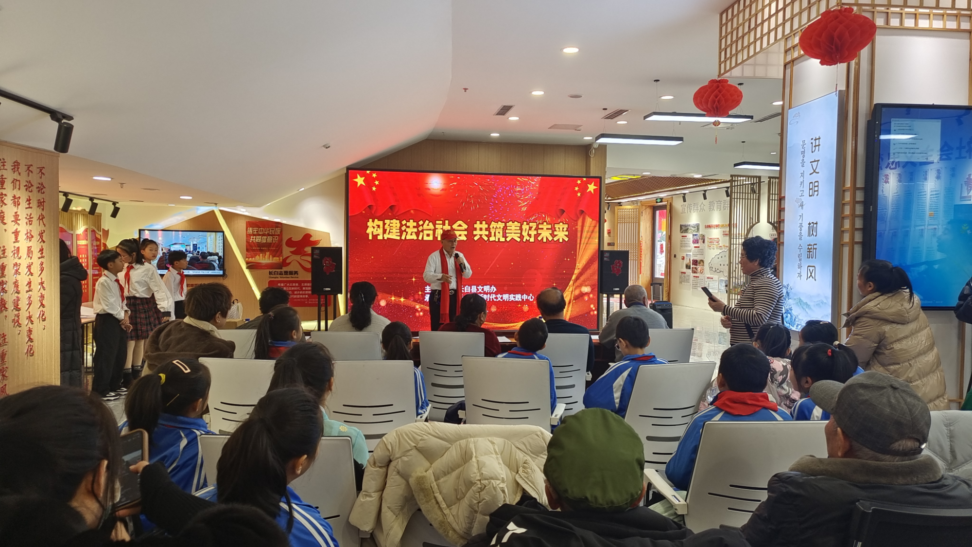為增強(qiáng)學(xué)生的法律意識,不斷凝聚奮進(jìn)力量,扎實有效開展新時代法治宣傳教育。長白縣委宣傳部、縣文明辦組織文明實踐志愿服務(wù)隊在新時代文明實踐中心(所、站)開展“構(gòu)建法治社會共筑美好未來”文藝活動,以寓教于樂的方式,讓在場的同學(xué)們品嘗了一道豐盛的法治文化大餐。
