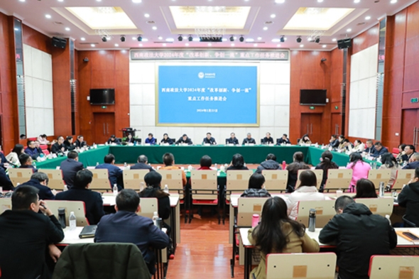 2月23日,西南政法大學(xué)召開2024年度“改革創(chuàng)新、爭創(chuàng)一流”重點工作任務(wù)推進會,以更加積極主動的姿態(tài)、更加奮發(fā)有為的狀態(tài)、更加務(wù)實高效的作風(fēng),確保學(xué)校在新時代新征程上謀好篇、開好局、起好步,推動高質(zhì)量發(fā)展,努力開創(chuàng)學(xué)校事業(yè)發(fā)展新局面。
