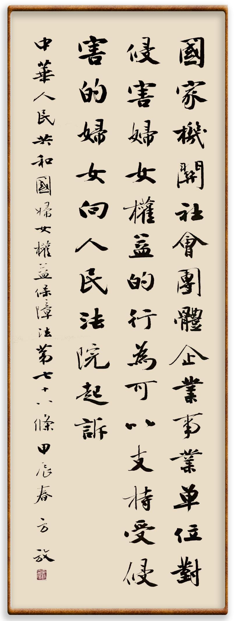 在“三八”國(guó)際婦女節(jié)之際,“書·法”系列活動(dòng),邀請(qǐng)書法家及書法愛(ài)好者們將筆端對(duì)準(zhǔn)《中華人民共和國(guó)婦女權(quán)益保障法》,書寫屬于婦女的法律“盾牌”。