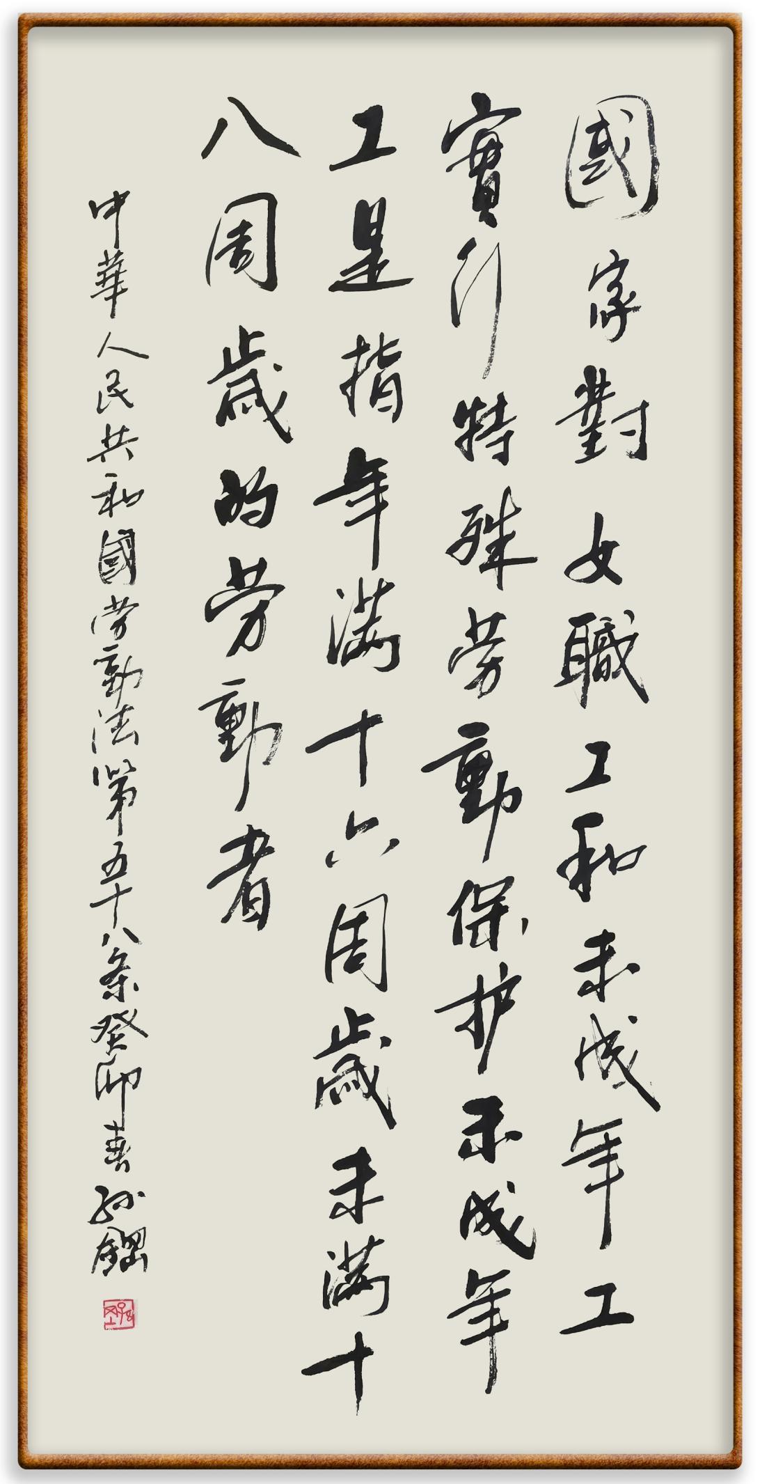 《中華人民共和國勞動法》第五十八條 國家對女職工和未成年工實行特殊勞動保護。