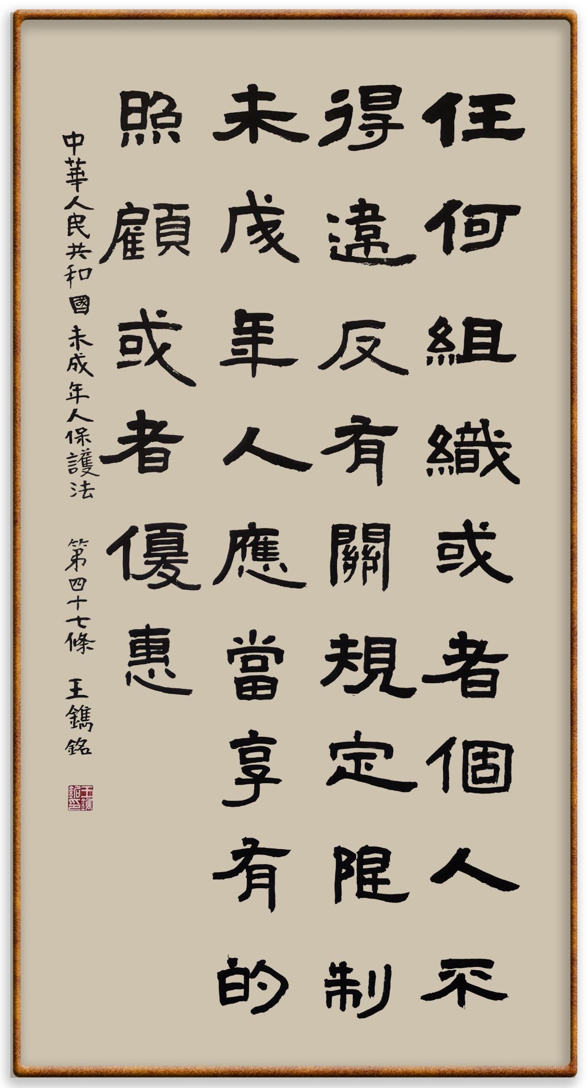 “六一”國際兒童節(jié)來臨之際,法制日報社聯(lián)合(全國)教育書畫協(xié)會基礎書法教育分會,推出“‘書·法’系列活動之書寫《中華人民共和國未成年人保護法》活動”,邀請小朋友書寫部分法條,讓孩子們在濃濃的節(jié)日氛圍中感受傳統(tǒng)文化的獨特魅力。