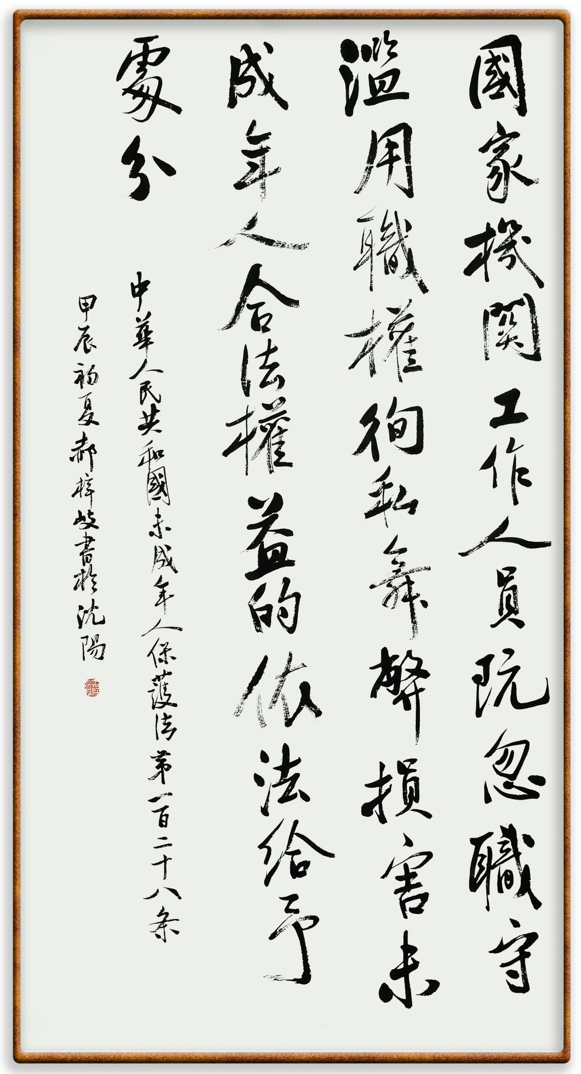 “六一”國際兒童節(jié)來臨之際,法制日?qǐng)?bào)社聯(lián)合(全國)教育書畫協(xié)會(huì)基礎(chǔ)書法教育分會(huì),推出“‘書·法’系列活動(dòng)之書寫《中華人民共和國未成年人保護(hù)法》活動(dòng)”,邀請(qǐng)小朋友書寫部分法條,讓孩子們?cè)跐鉂獾墓?jié)日氛圍中感受傳統(tǒng)文化的獨(dú)特魅力。