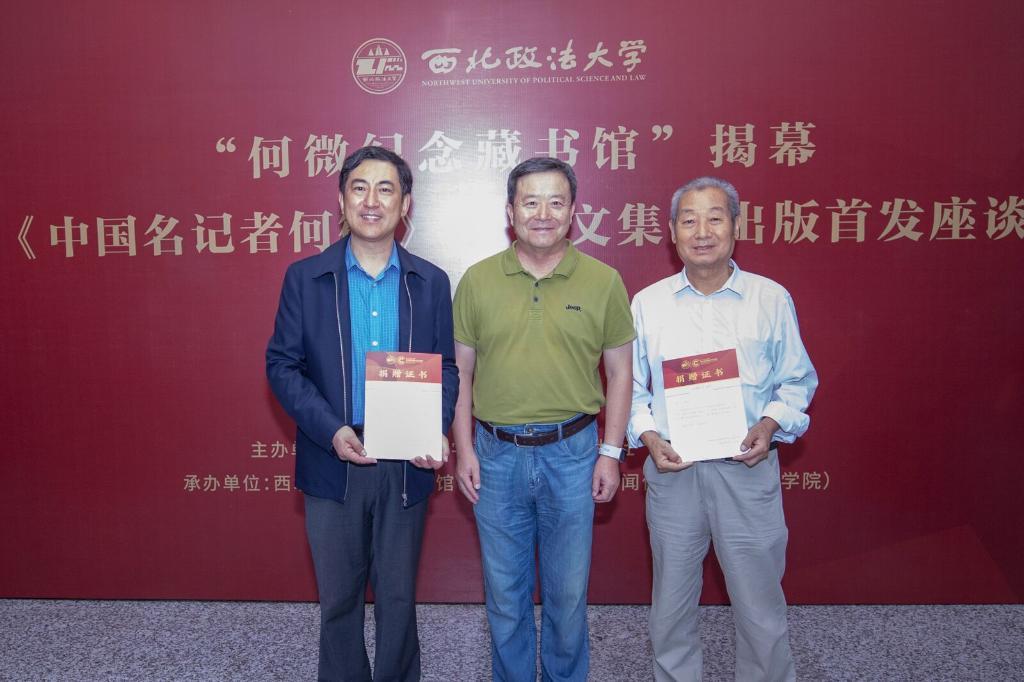 現(xiàn)場,親屬代表張振林捐贈了何微手稿和書籍等一批資料。西北政法大學為圖書捐贈方人民日報出版社、新華出版社頒發(fā)了捐贈證書。