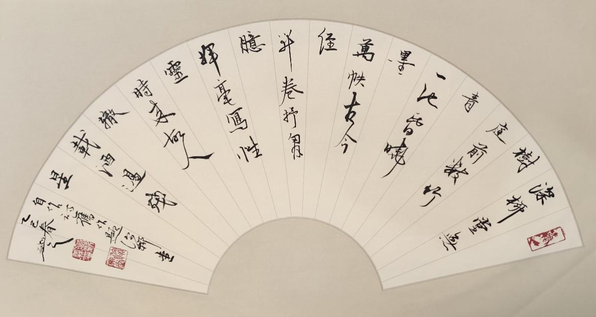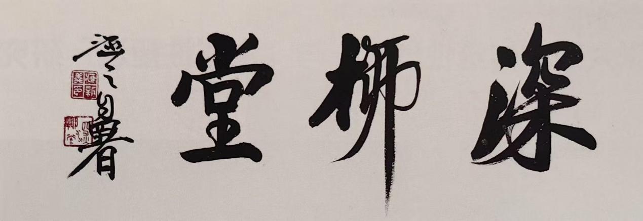 深柳堂正堂約三十平,中置三米大書案,后一列四米書柜,書籍滿墻,宣紙堆山。另有木榻竹幾,散貯書卷。書案正對一個書法中堂,兩側(cè)為自書陸放翁書房對聯(lián):萬卷古今消永日,一窗昏曉送流年。——人生苦短,似水流年,我亦愿在這深柳堂中南窗寄傲,蘊(yùn)藉滋養(yǎng)著仿佛貫穿千載時光的淡定與從容。