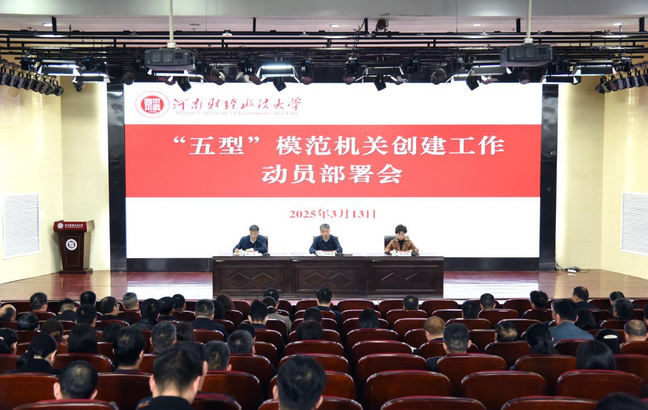 本報(bào)訊 記者趙紅旗 近日,河南財(cái)經(jīng)政法大學(xué)舉行“五型”模范機(jī)關(guān)創(chuàng)建工作動(dòng)員部署會(huì)。