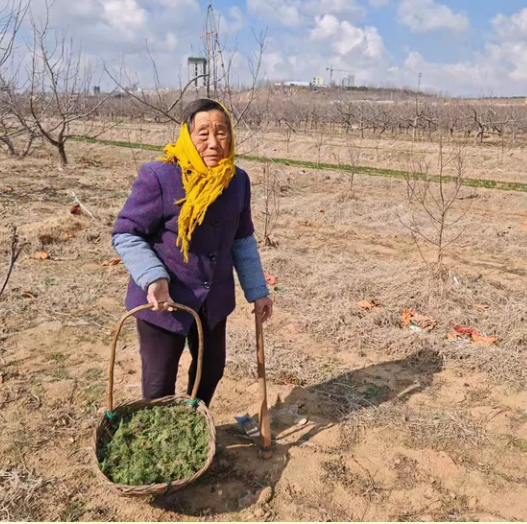 在乍暖還寒的初春時(shí)節(jié),大地似乎還沒有完全從冬日的沉睡中蘇醒,一片蕭瑟中夾雜著幾抹嫩綠的生機(jī)。就在這片尚未完全復(fù)蘇的田野上,我的84歲老母親,身穿厚重的棉衣,手執(zhí)一把略顯陳舊的小鏟子,正彎著腰,仔細(xì)地搜尋著什么。她的目光銳利而溫柔,仿佛能穿透寒冷的空氣,捕捉到那些剛剛探出頭來的野菜——麥蒿。