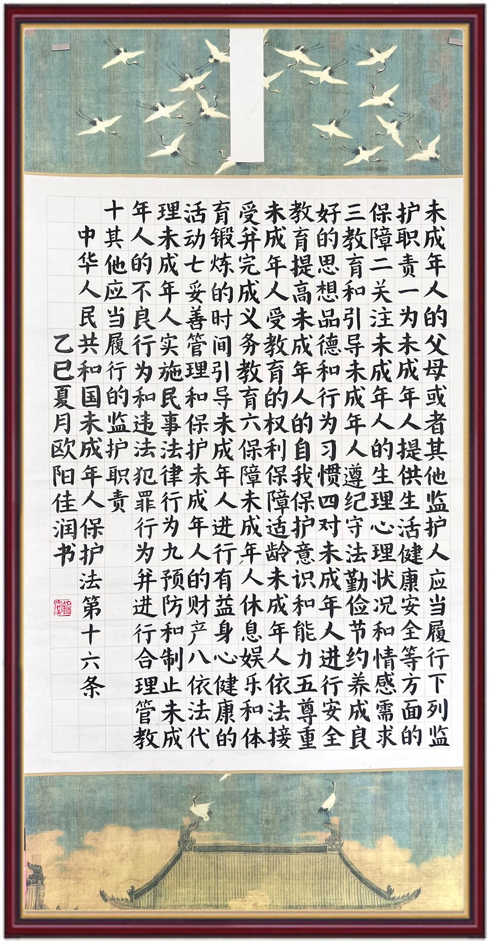 “六一”國際兒童節(jié)來臨之際,“書·法”活動邀請小朋友們書寫《中華人民共和國未成年人保護(hù)法》。一筆一畫寫未來,一字一句守純真!