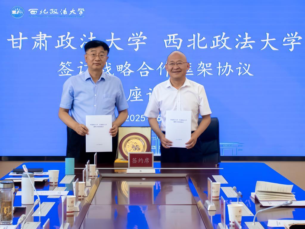 本報訊 記者孫立昊洋 6月5日,西北政法大學與甘肅政法大學戰(zhàn)略合作框架協(xié)議簽約儀式暨座談會在西北政法大學舉行。西北政法大學校長范九利、甘肅政法大學校長鄭高鍵出席簽約儀式。與會人員圍繞學科建設、科學研究、人才培養(yǎng)、師資隊伍建設、國際合作等方面展開深入交流。