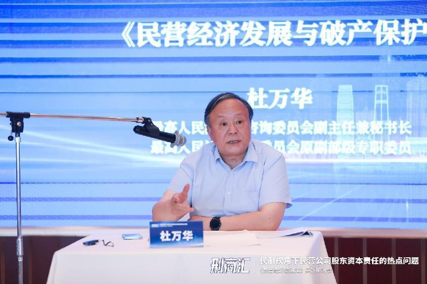 最高人民法院原副部級(jí)專職委員杜萬(wàn)華聚焦民營(yíng)經(jīng)濟(jì)發(fā)展與破產(chǎn)保護(hù)主題,以《民營(yíng)經(jīng)濟(jì)發(fā)展與破產(chǎn)保護(hù)》為題,闡述破產(chǎn)制度作為市場(chǎng)經(jīng)濟(jì)基礎(chǔ)制度的定位,建議通過破產(chǎn)保護(hù)推動(dòng)庭外重組等制度,優(yōu)化生產(chǎn)要素配置。