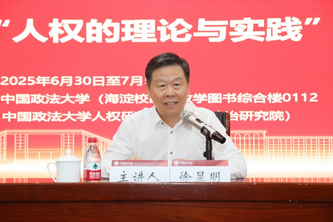 教育部高等學(xué)校法學(xué)類專業(yè)教學(xué)指導(dǎo)委員會(huì)主任委員、中國人權(quán)研究會(huì)首席專家、十三屆全國人大監(jiān)察和司法委員會(huì)副主任委員徐顯明以“關(guān)于人權(quán)的幾個(gè)基本問題”為題,作暑期班首場授課。徐顯明從法律、哲學(xué)、政治、歷史等多個(gè)角度出發(fā),深入闡述了人權(quán)是全人類的共同價(jià)值、人權(quán)的概念和層次、人權(quán)的發(fā)展階段、人權(quán)的歷史演變等內(nèi)容。