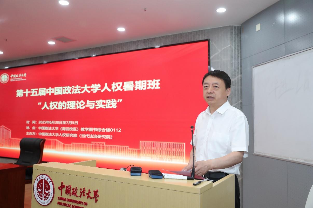 中國政法大學(xué)校長馬懷德出席開班儀式并致辭。馬懷德提出,中國政法大學(xué)始終致力于推動(dòng)中國特色法學(xué)學(xué)科體系、學(xué)術(shù)體系、話語體系建設(shè),構(gòu)建中國法學(xué)自主知識(shí)體系。作為“國家人權(quán)教育與培訓(xùn)基地”和“國家高端智庫建設(shè)培育單位”,人權(quán)研究院(當(dāng)代法治研究院)不斷提升政治站位,深入貫徹落實(shí)國家人權(quán)行動(dòng)計(jì)劃,堅(jiān)定履行人權(quán)教育培訓(xùn)、理論研究、對(duì)外交流三大使命。他強(qiáng)調(diào),人權(quán)是全人類共同的價(jià)值追求,人權(quán)教育不僅是知識(shí)的傳授,更是價(jià)值的塑造與人格的涵養(yǎng)。人權(quán)暑期班作為一項(xiàng)高水平、跨領(lǐng)域、國際化的人權(quán)教育實(shí)踐,不僅是人權(quán)知識(shí)的傳播課堂,更是理念交匯的對(duì)話平臺(tái),青年學(xué)子應(yīng)以跨學(xué)科視角,多維度、多視角、多層次了解人權(quán)研究的重大議題,在多邊、多元的交流中不斷拓展全球視野與認(rèn)知邊界,努力成為具有全球視野和中國立場的法治人才。他同時(shí)希望各位學(xué)員能夠借此機(jī)會(huì)深入開展學(xué)術(shù)交流,共同推動(dòng)中國人權(quán)學(xué)科建設(shè)、學(xué)術(shù)研究與國際傳播。