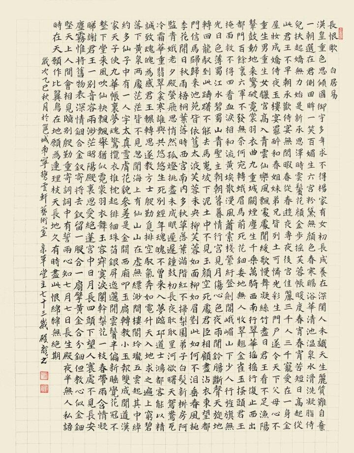 本次展覽共展出羅殿龍楷書作品160余件,其中,臨古板塊86幅作品中,涵蓋臨十大名家楷書、古代魏碑及歷代名家佳作三類,既還原原帖章法神韻,又深掘古法精髓;自創(chuàng)板塊包含69幅單幅楷書、3幅長卷及2冊專著,以楷為基融入現(xiàn)代審美,全面展示羅殿龍數(shù)十年來楷書藝術(shù)探索實踐的成果。