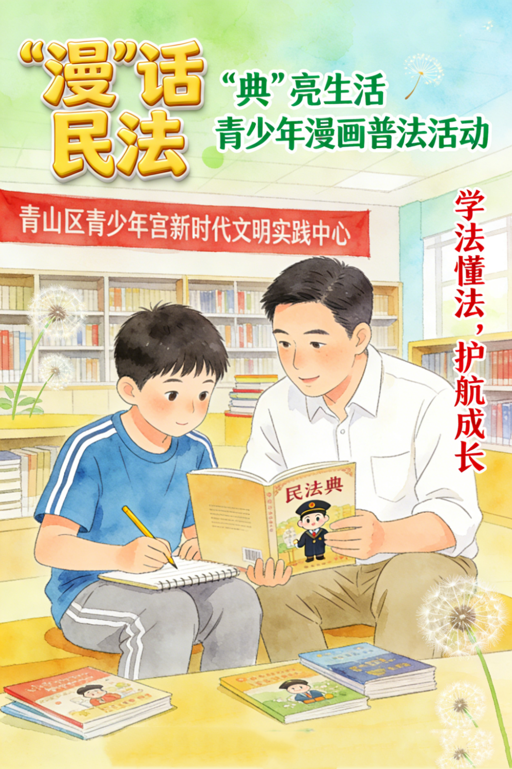 為使《中華人民共和國(guó)民法典》真正走入青少年心中,激發(fā)學(xué)法興趣,在寓教于樂中提升其法治素養(yǎng)。1月17日上午,湖北省武漢市青山區(qū)青少年宮、紅鋼城街道三街社區(qū)聯(lián)合開展“‘漫’話民法,‘典’亮生活”青少年漫畫普法活動(dòng)。作為“社會(huì)生活的百科全書”,民法典貫穿人的一生,更是青少年成長(zhǎng)為知法、懂法、守法好孩子的重要指引。