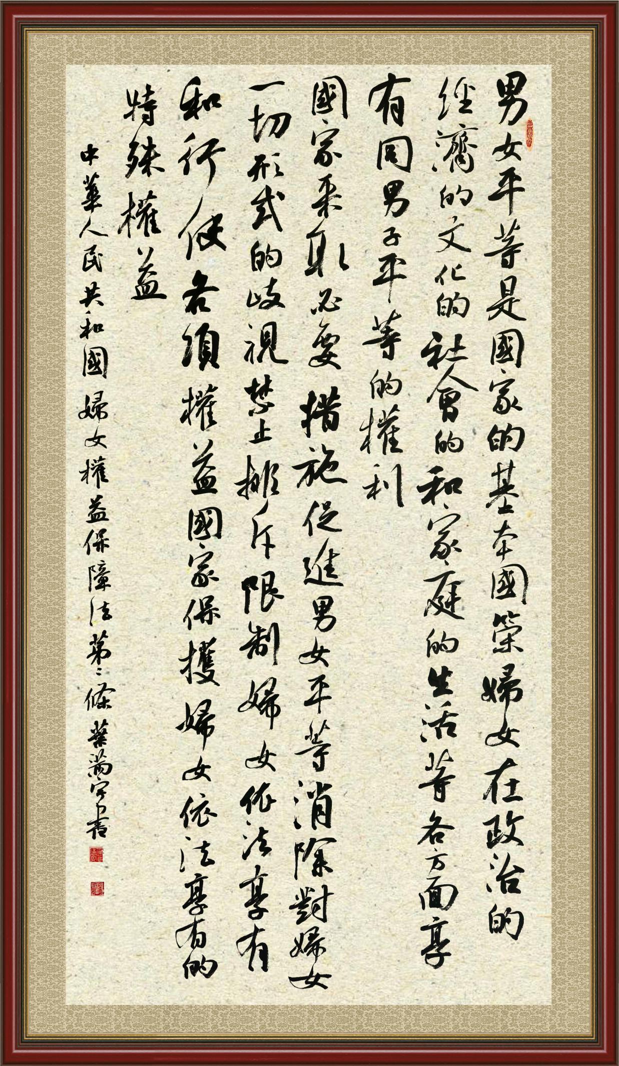 婦女權益保障法第二條 男女平等是國家的基本國策。婦女在政治的、經濟的、文化的、社會的和家庭的生活等各方面享有同男子平等的權利。