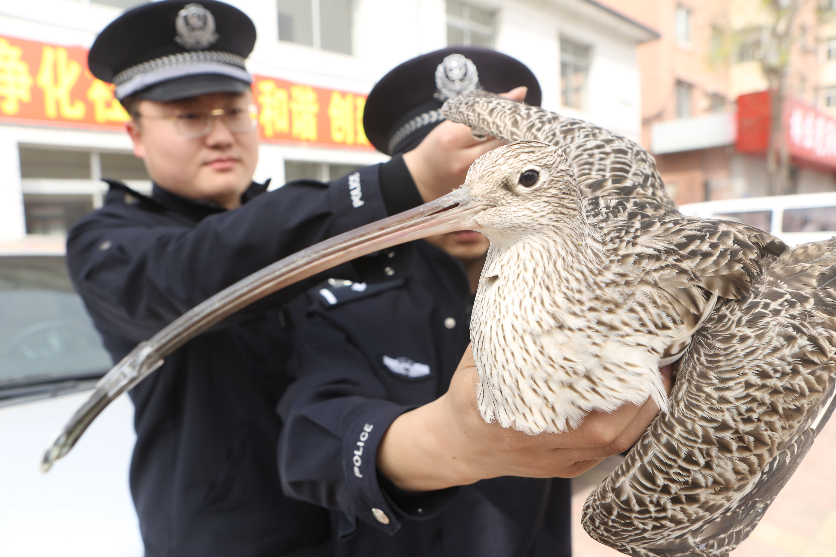 4月22日,遼寧省東港市公安局花園派出所接群眾報(bào)警,成功救助一只受傷的被全球列為瀕危物種、國家二級(jí)保護(hù)動(dòng)物——杓鷸,民警及時(shí)將杓鷸移交給當(dāng)?shù)匾吧鷦?dòng)植物保護(hù)中心進(jìn)行救治。 附著物通訊員 蔡冰 攝