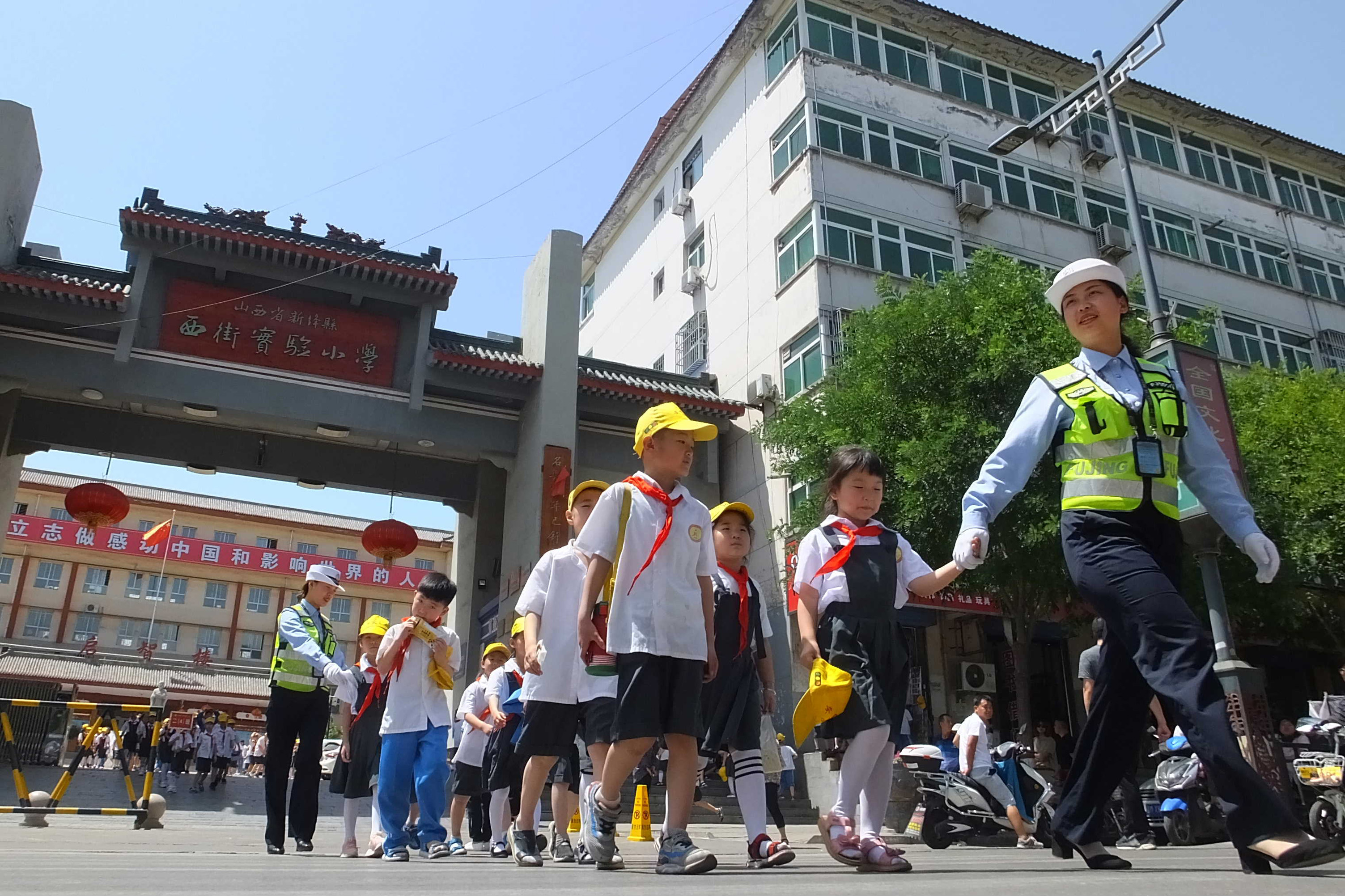 6月3日,山西運(yùn)城市新絳縣公安交警大隊(duì)古城中隊(duì)的交警們?cè)谖鹘謱?shí)驗(yàn)小學(xué)大門(mén)前接力護(hù)送中午放學(xué)的小學(xué)生安全過(guò)馬路。 新絳縣作為山西省教育大縣,護(hù)送中小學(xué)生安全上下學(xué)已成為當(dāng)?shù)亟痪囊豁?xiàng)日常工作。雖然幾十年中交警換了一茬又一茬,好多交警已退休,但“接力護(hù)航”的接力棒在一批批交警手中傳遞,確保了幾十年來(lái)無(wú)一起重特大中小學(xué)生交通事故發(fā)生。