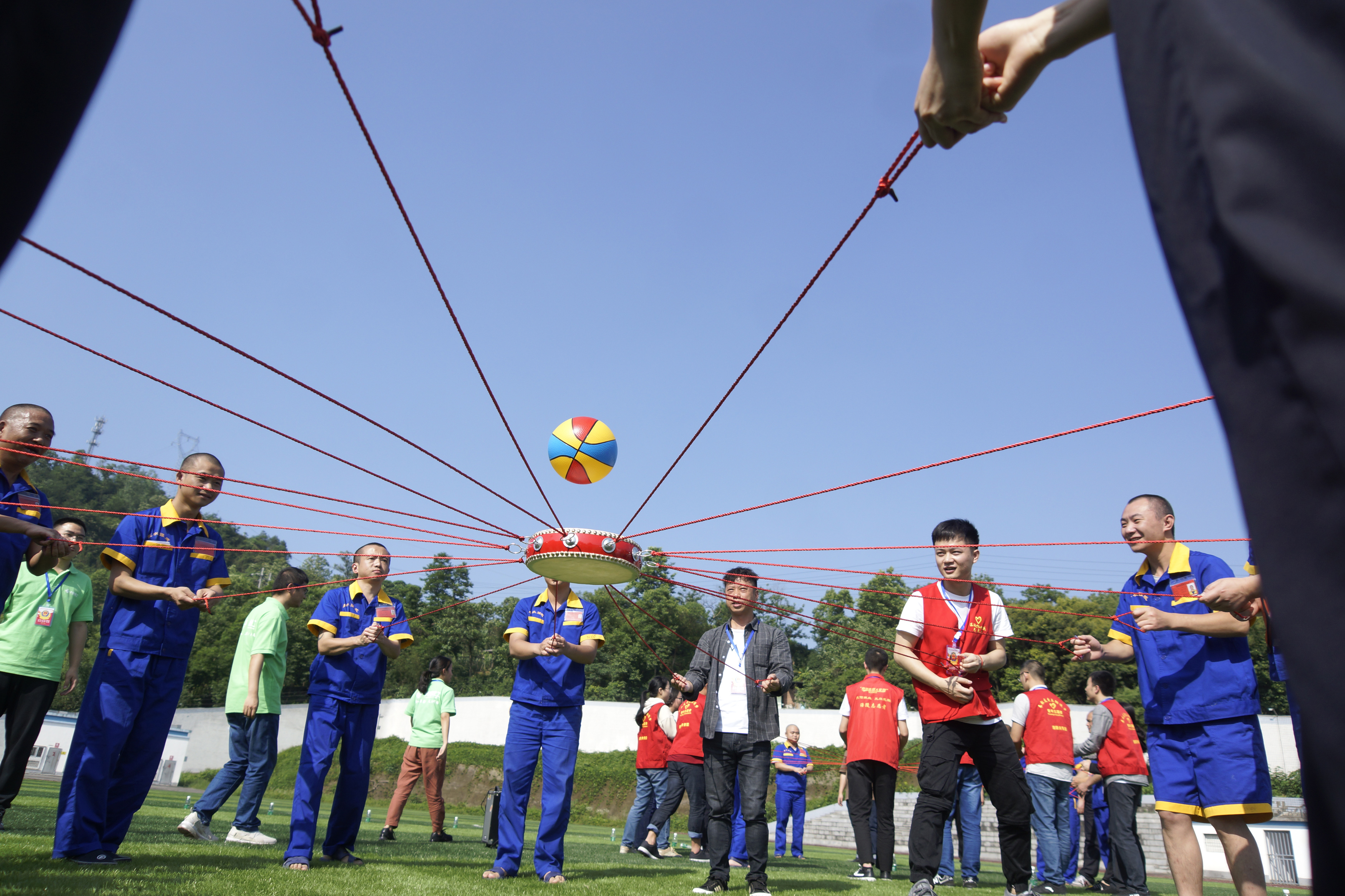 運(yùn)動(dòng)場(chǎng)草坪,一支禁毒志愿者隊(duì)伍來(lái)到戒毒所開展幫教活動(dòng),與戒毒人員同做趣味游戲