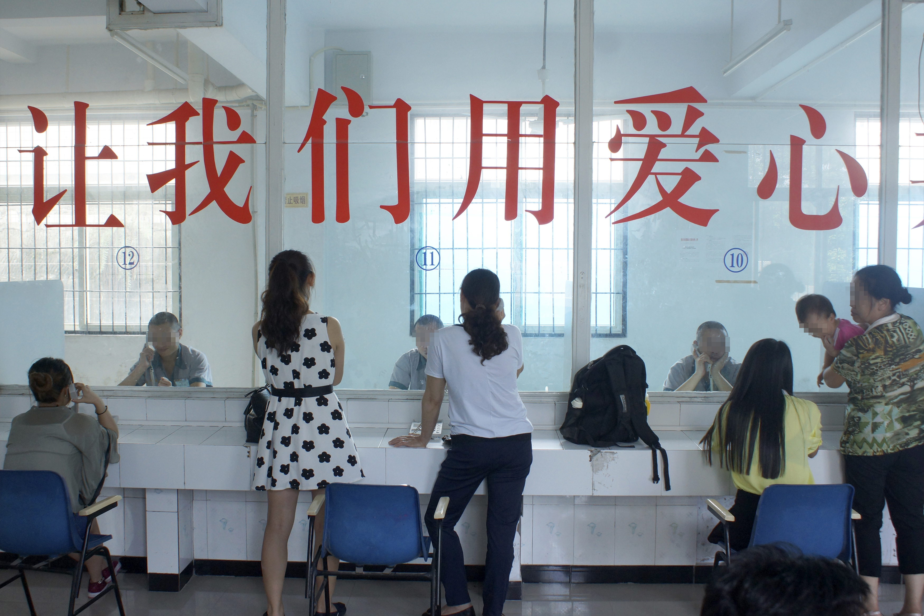 會(huì)見大廳,雖然隔著厚厚的玻璃窗,但通話器仍然傳遞著親人不離不棄的溫暖