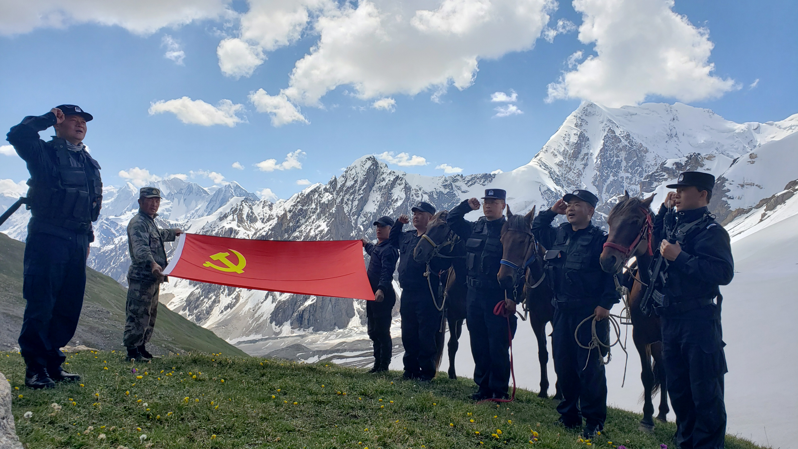 為加強邊境一線管控,近日,新疆伊犁邊境管理支隊夏特邊境派出所民警聯(lián)合群眾護邊員深入天山山脈木扎爾特冰川古道達坂前沿踏查。期間,民警風餐露宿,頂著4000余米的海拔和強烈紫外線,全面了解掌握了邊境前沿動態(tài),有效消除了各類隱患。 法制網(wǎng)記者 潘從武 通訊員 李康強 閆貴峰 攝