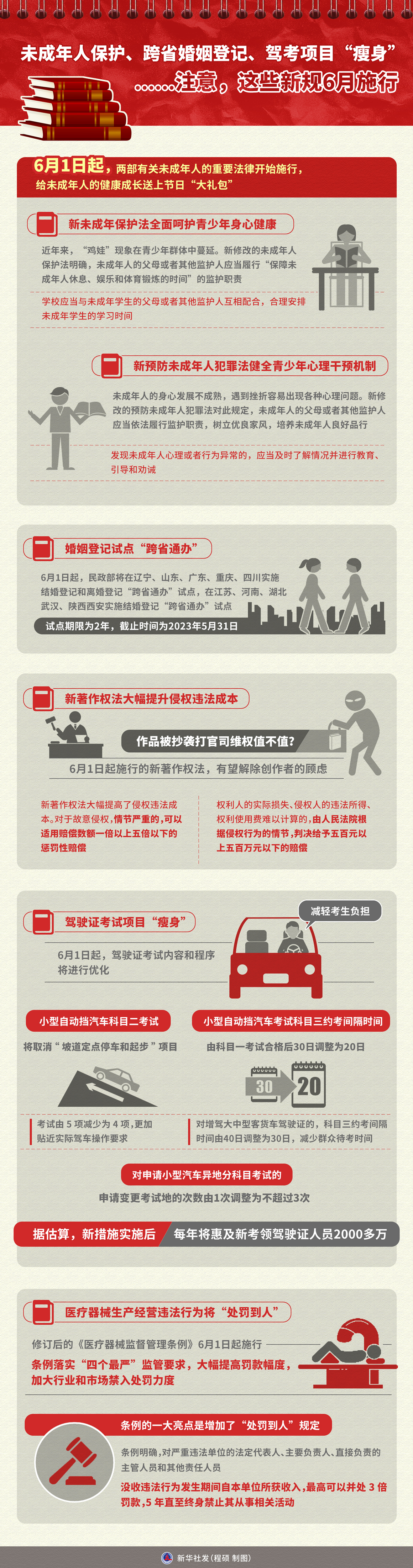 圖表:未成年人保護、跨省婚姻登記、駕考項目“瘦身”……注意,這些新規(guī)6月施行