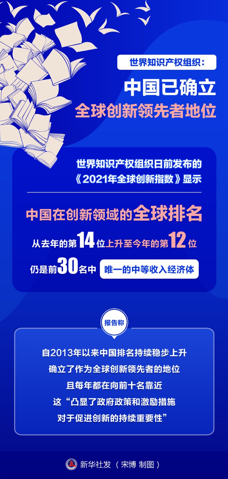 世界知識(shí)產(chǎn)權(quán)組織日前發(fā)布的《2021年全球創(chuàng)新指數(shù)》顯示,中國(guó)在創(chuàng)新領(lǐng)域的全球排名從去年的第14位上升至今年的第12位,仍是前30名中唯一的中等收入經(jīng)濟(jì)體。