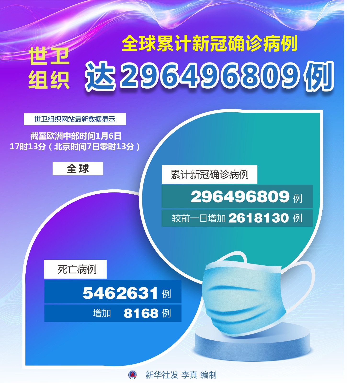 世界衛(wèi)生組織1月6日公布的最新數(shù)據(jù)顯示,全球累計新冠確診病例達296496809例。