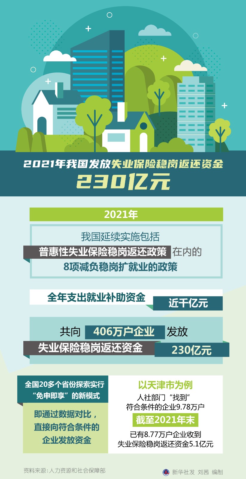 記者近日從人力資源和社會保障部獲悉,2021年,我國延續(xù)實施包括普惠性失業(yè)保險穩(wěn)崗返還政策在內(nèi)的8項減負穩(wěn)崗擴就業(yè)的政策,全年支出就業(yè)補助資金近千億元,共向406萬戶企業(yè)發(fā)放失業(yè)保險穩(wěn)崗返還資金230億元。