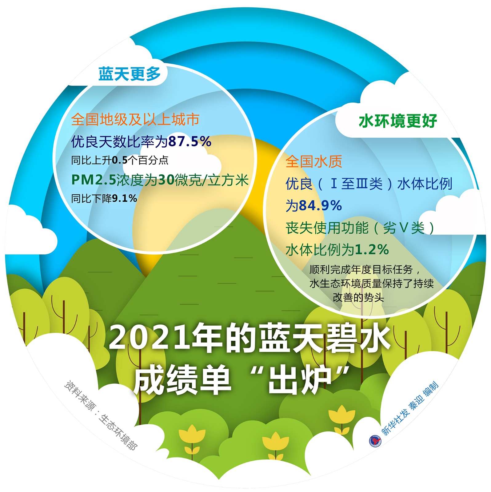 記者從生態(tài)環(huán)境部獲悉,2021年,國民經(jīng)濟和社會發(fā)展計劃中生態(tài)環(huán)境領域8項約束性指標順利完成,污染物排放持續(xù)下降,生態(tài)環(huán)境質量持續(xù)改善。生態(tài)環(huán)境保護實現(xiàn)“十四五”起步之年良好開局,交出亮眼成績單。