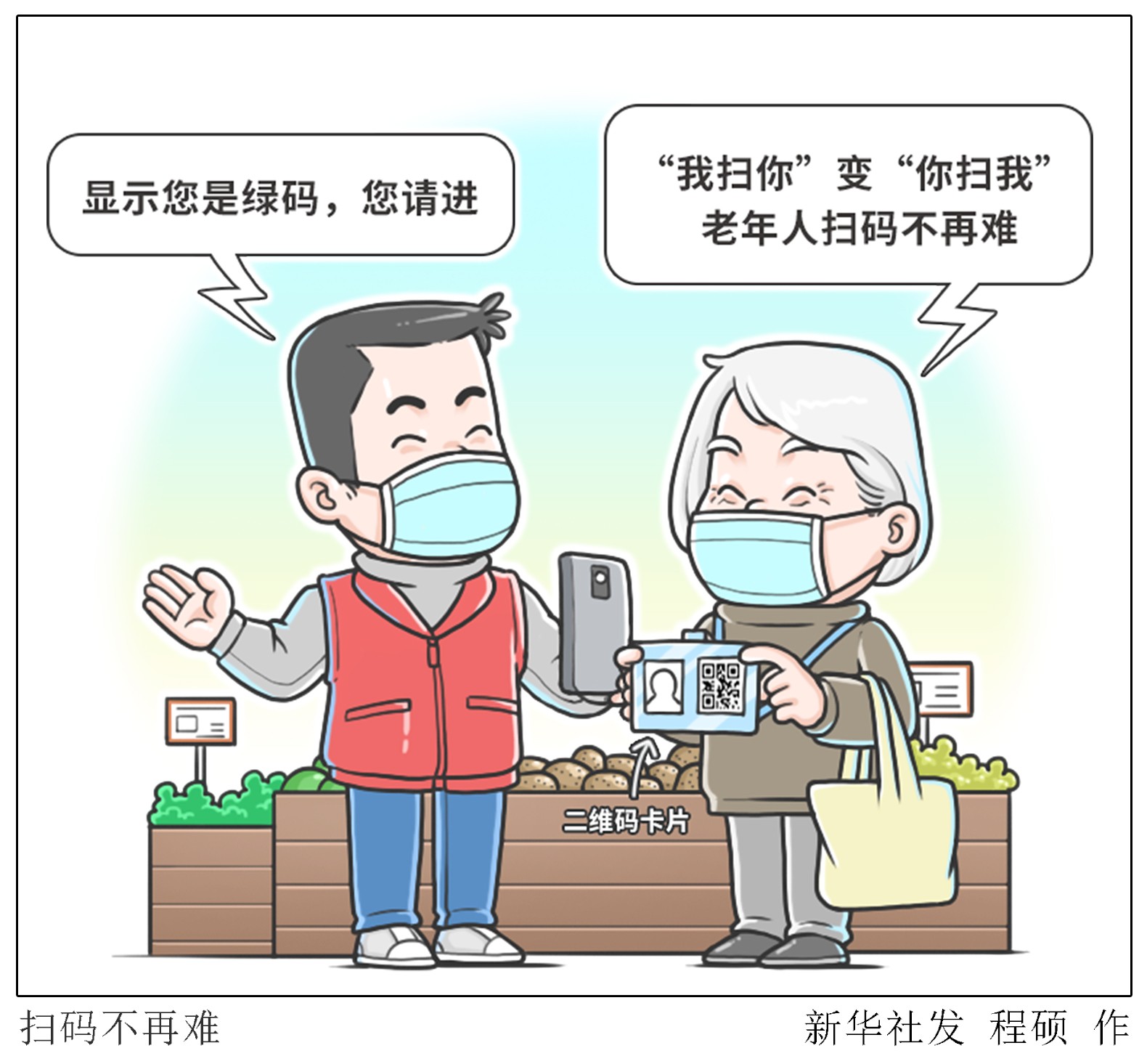 為破解老年人掃碼難題,黑龍江省齊齊哈爾市梅里斯達(dá)斡爾族區(qū)通過(guò)與公安部門防疫大數(shù)據(jù)對(duì)接,運(yùn)用數(shù)字技術(shù)手段,給無(wú)智能手機(jī)人員生成二維碼,并制卡發(fā)放。