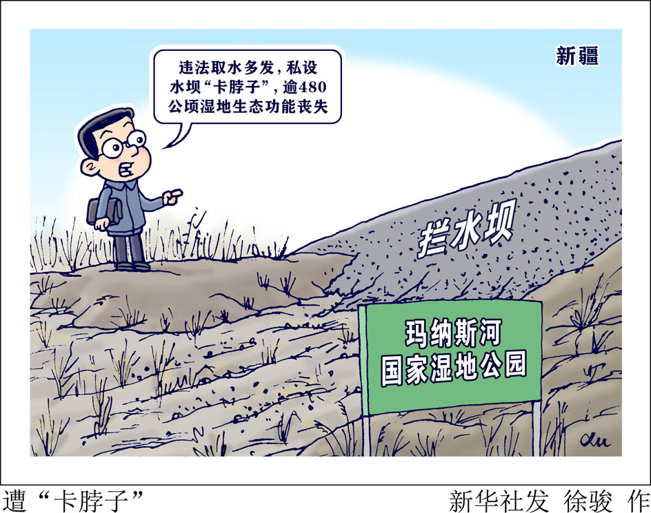 瑪納斯河是天山北坡最主要的河流之一。近日,“新華視點”記者跟隨中央第五生態(tài)環(huán)境保護(hù)督察組在新疆發(fā)現(xiàn),瑪納斯河國家濕地公園、瑪納斯河流域中上游濕地省級自然保護(hù)區(qū)部分重要濕地生態(tài)功能退化,483.9公頃濕地生態(tài)功能基本喪失,部分區(qū)域甚至嚴(yán)重干涸,失去基本輸水功能,附近難見水生植物。