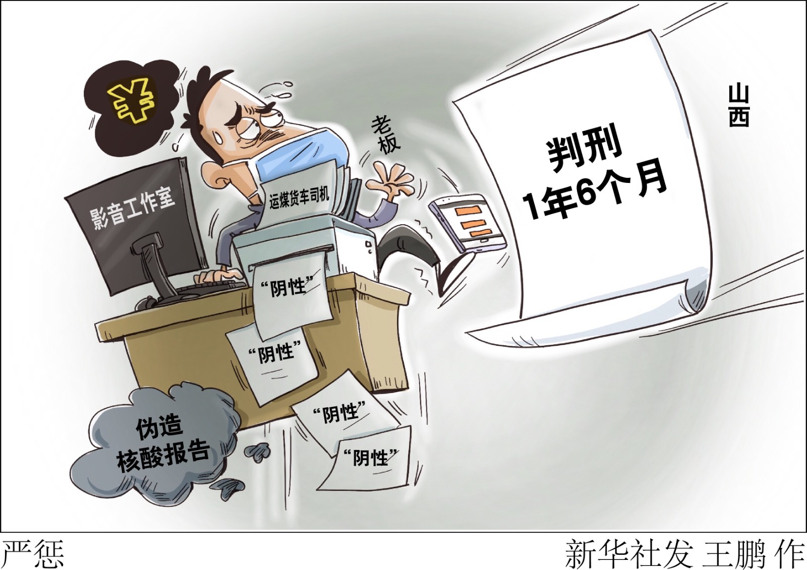 山西省檢察院日前發(fā)布第一批山西檢察機關依法辦理涉新冠肺炎疫情典型案例。其中一名影音工作室老板為252名運煤貨車司機偽造核酸檢測報告621份,獲刑1年6個月。