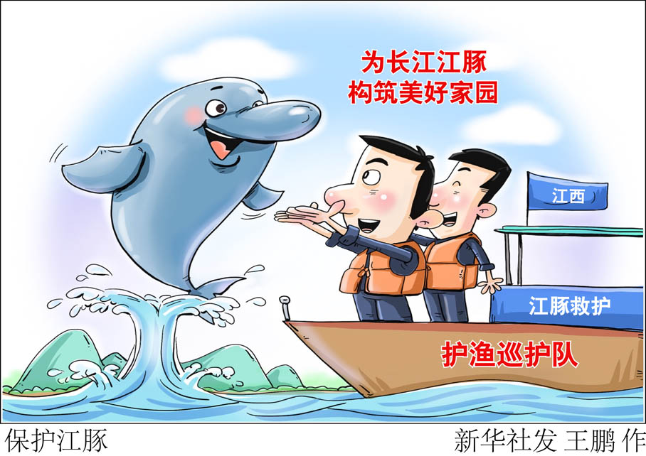 碧波蕩漾的鄱陽湖永修松門山水域,一群江豚在水中歡快嬉戲,護(hù)漁巡護(hù)隊(duì)員們來回在湖面巡查。近年來,江西持續(xù)改善鄱陽湖生態(tài)環(huán)境,為長江江豚構(gòu)筑美好家園。