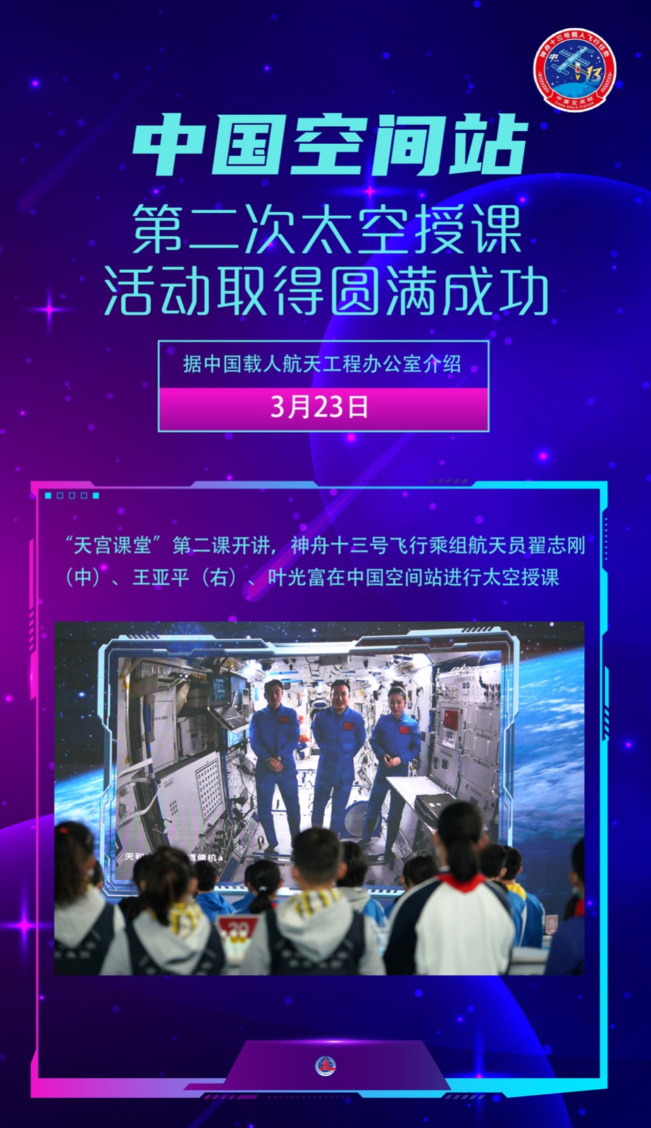 “天宮課堂”第二課3月23日開講,“太空教師”翟志剛、王亞平、葉光富在中國空間站再次為廣大青少年帶來一堂精彩的太空科普課。