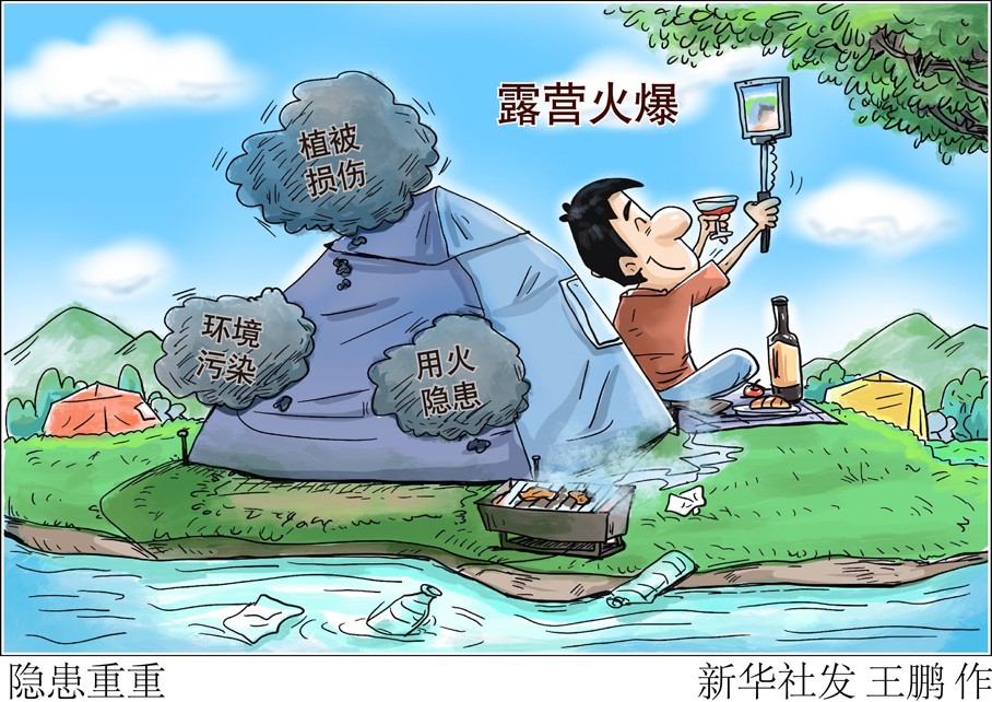 “新華視點”記者調(diào)查發(fā)現(xiàn),部分露營者選擇不具備基礎(chǔ)條件的地點露營,由于缺乏專業(yè)的規(guī)范引導(dǎo),產(chǎn)生了植被損傷、環(huán)境污染、用火隱患等問題。