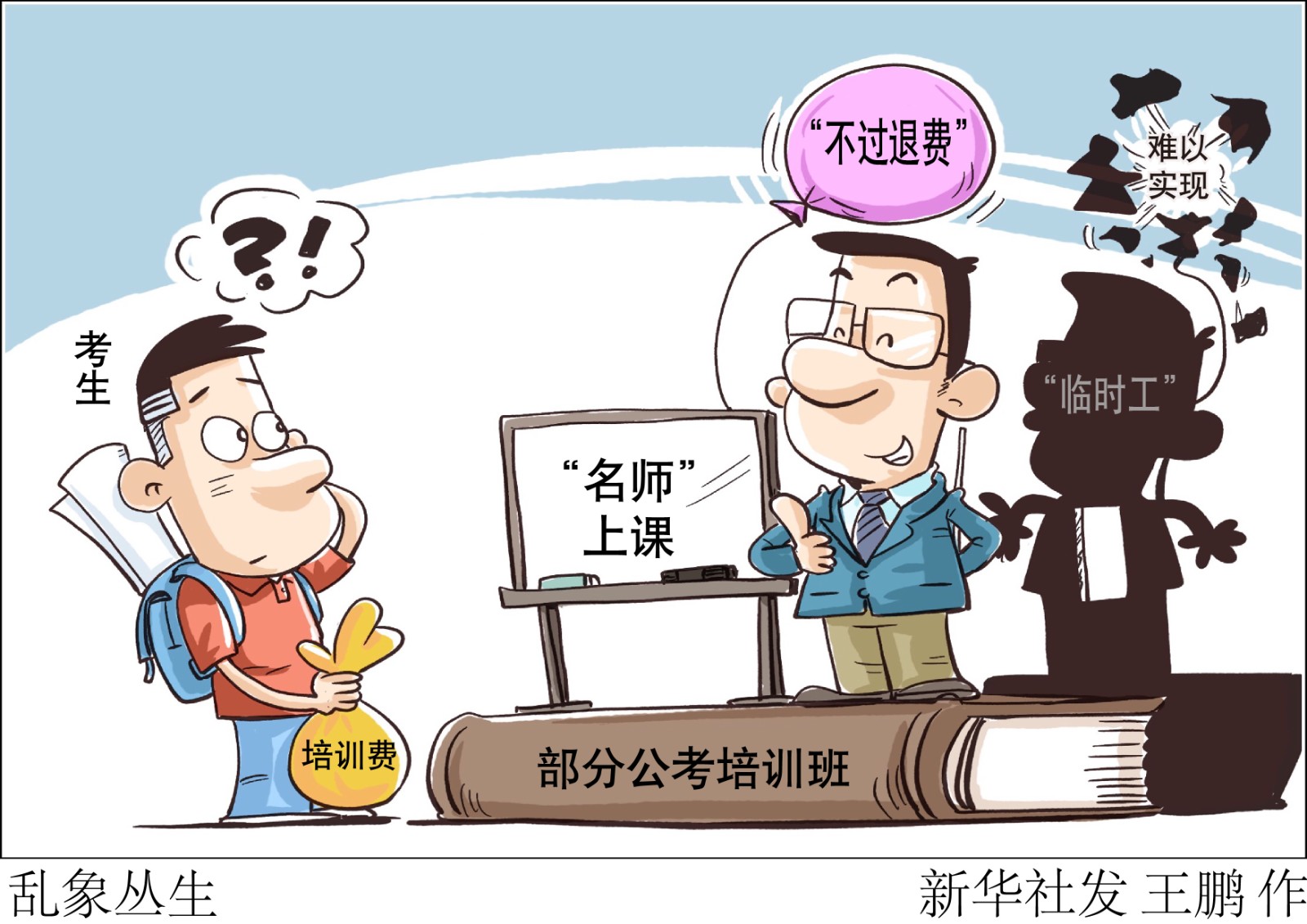 眼下,國家、地方公務(wù)員及選調(diào)生考試筆試大都已經(jīng)結(jié)束,一些地方面試因疫情推遲。為應(yīng)對公考筆試、面試,不少大學(xué)畢業(yè)生參加各種培訓(xùn)班?!靶氯A視點”記者調(diào)查發(fā)現(xiàn),有些培訓(xùn)機(jī)構(gòu)所謂的“名師”,竟是招聘的“臨時工”;所謂“不過退費(fèi)”,有的難以實現(xiàn)。