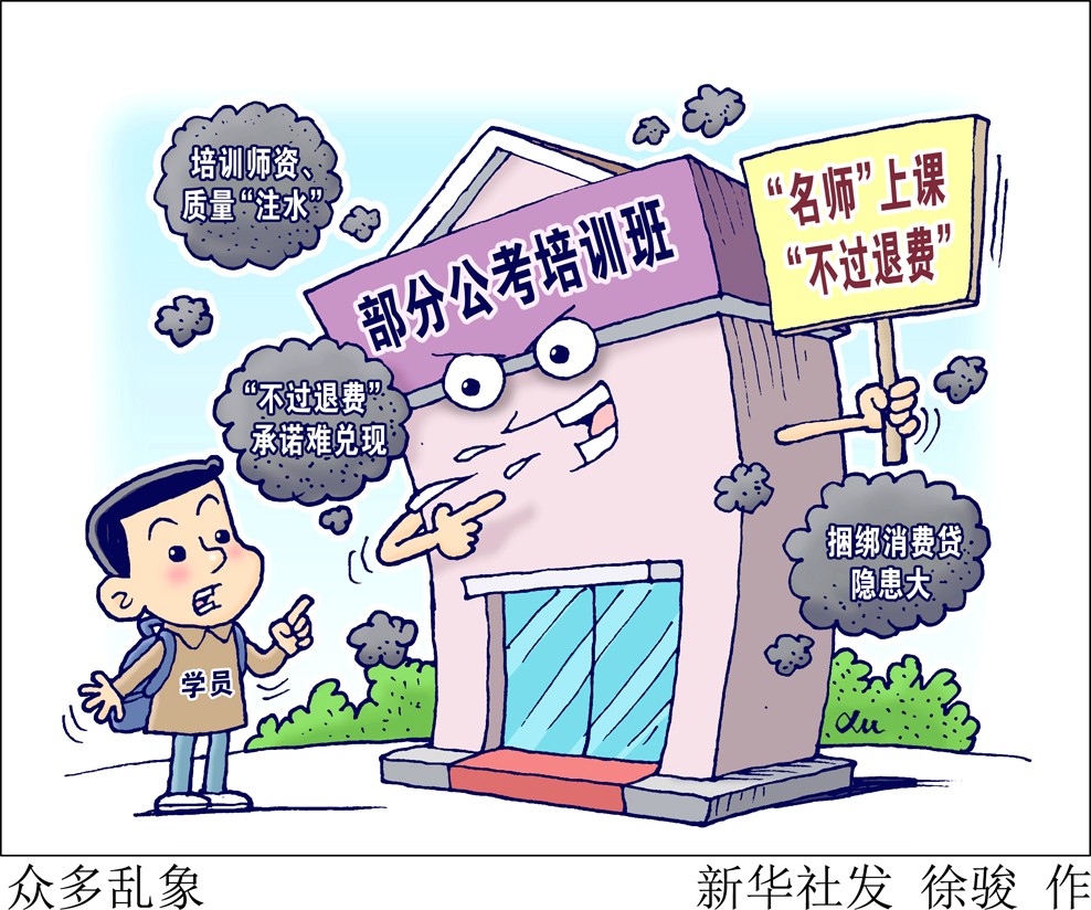 眼下,國家、地方公務(wù)員及選調(diào)生考試筆試大都已經(jīng)結(jié)束,一些地方面試因疫情推遲。為應(yīng)對(duì)公考筆試、面試,不少大學(xué)畢業(yè)生參加各種培訓(xùn)班?!靶氯A視點(diǎn)”記者調(diào)查發(fā)現(xiàn),有些培訓(xùn)機(jī)構(gòu)所謂的“名師”,竟是招聘的“臨時(shí)工”;所謂“不過退費(fèi)”,有的難以實(shí)現(xiàn)。