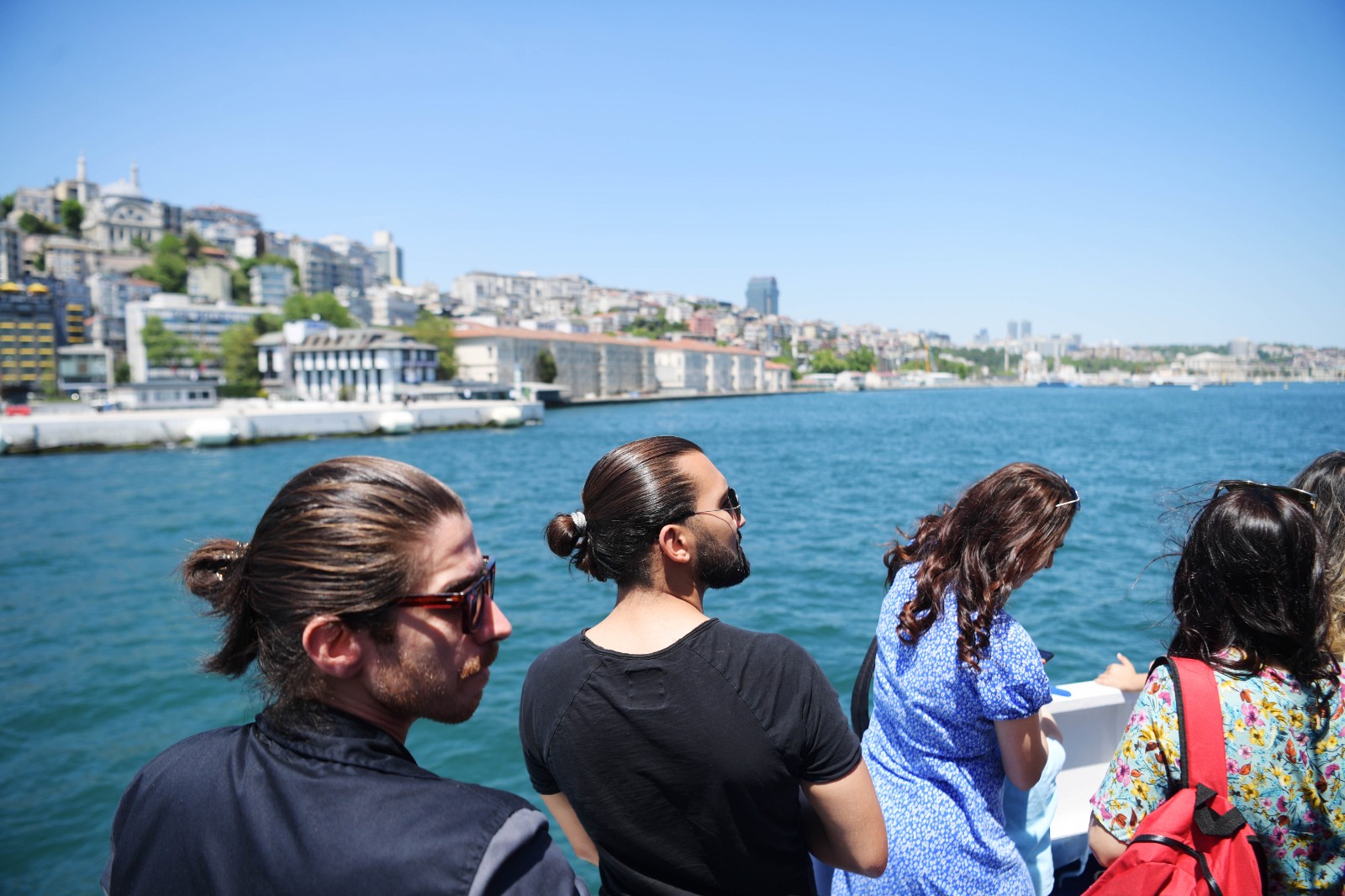 5月24日,游客在土耳其伊斯坦布爾的博斯普魯斯海峽乘船游玩。