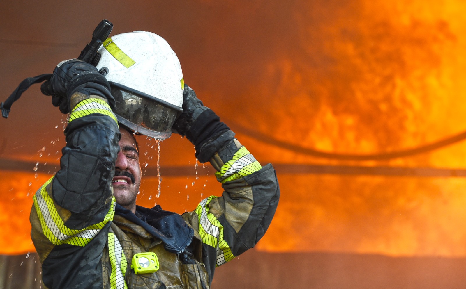 5月30日,消防員在科威特首都省一處發(fā)生火災(zāi)的帳篷市場工作。