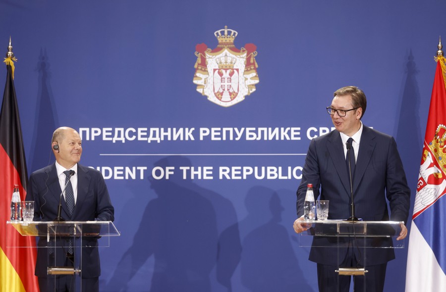 6月10日,塞爾維亞總統(tǒng)武契奇(右)在首都貝爾格萊德與到訪的德國總理朔爾茨出席新聞發(fā)布會。